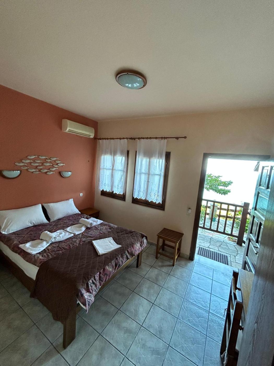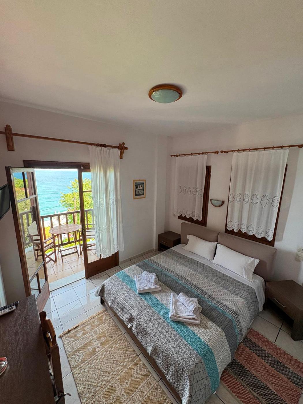 Double or Twin Room with Sea View. This room has a balcony with a view of the Aegean Sea. ;