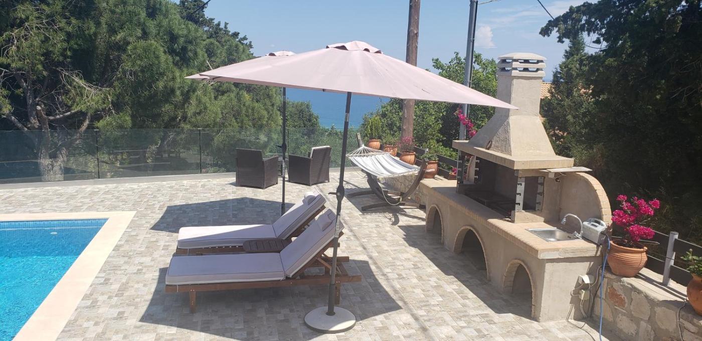 Villa with Private Pool. Guests will have a special experience as the villa offers a pool with a view. Featuring a private entrance, this air-conditioned villa consists of 1 living room, 2 separate bedrooms and 1 bathroom with a walk-in shower and a hairdryer. Guests will find a stovetop, a refrigerator, kitchenware and an oven in the kitchen. The villa also offers a barbecue. Boasting a terrace with sea views, this villa also provides a washing machine and a flat-screen TV with streaming services. The unit offers 3 beds.