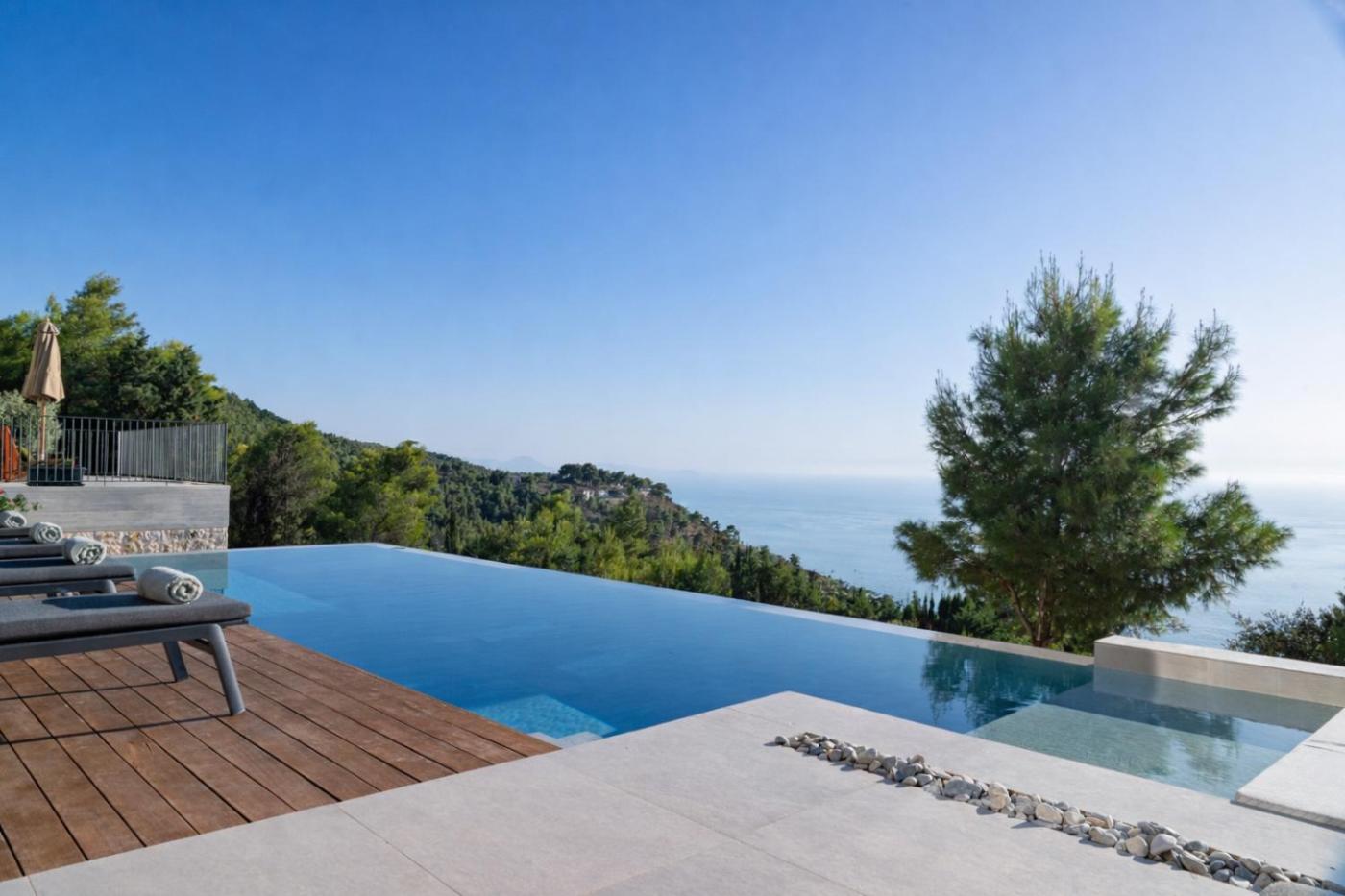 Guests can enjoy the infinity pool and garden at the villa.