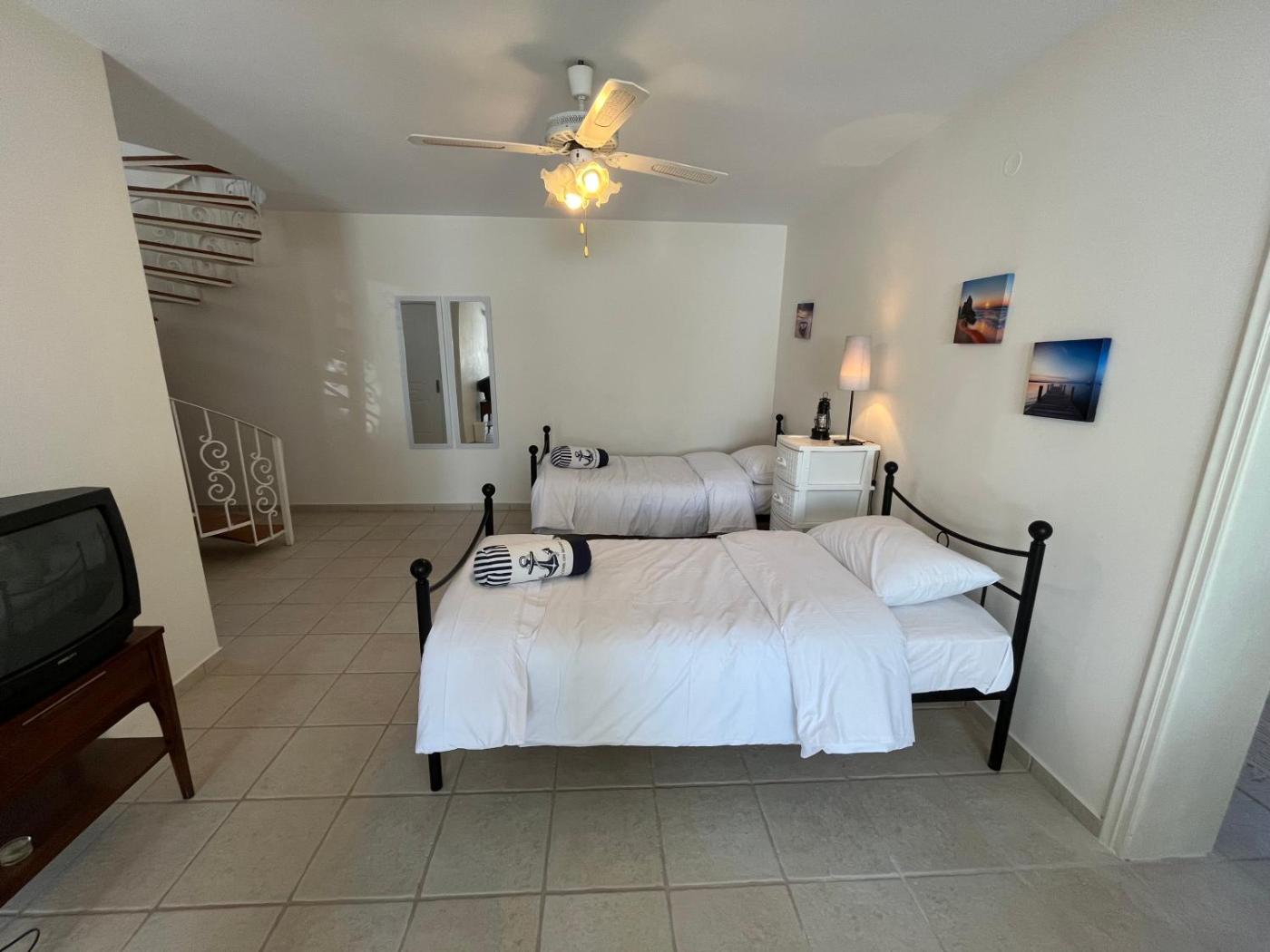 Four-Bedroom House. Boasting a private entrance, this air-conditioned holiday home features 1 living room, 4 separate bedrooms and 3 bathrooms with a shower and a hairdryer. The fully equipped kitchen features a stovetop, a refrigerator, kitchenware and an oven. The unit has a washing machine, sea views, a terrace and chocolate is available for guests. The unit has 5 beds.