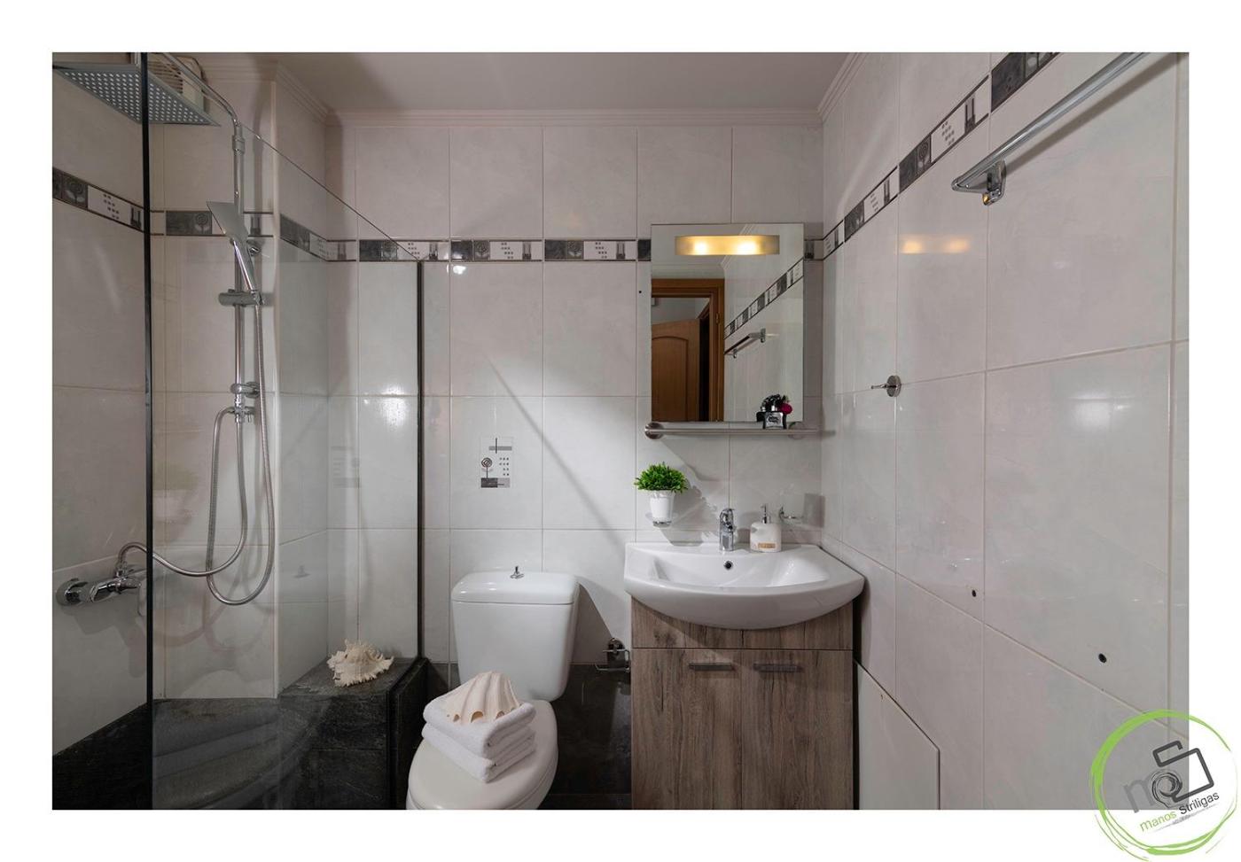 One-Bedroom Apartment. Boasting a private entrance, this air-conditioned apartment features 1 living room, 1 separate bedroom and 1 bathroom with a shower and a hairdryer. The well-equipped kitchen has a stovetop, a refrigerator, kitchenware and a microwave. Featuring a terrace with sea views, this apartment also features a tea and coffee maker and a flat-screen TV with cable channels. The unit has 2 beds.