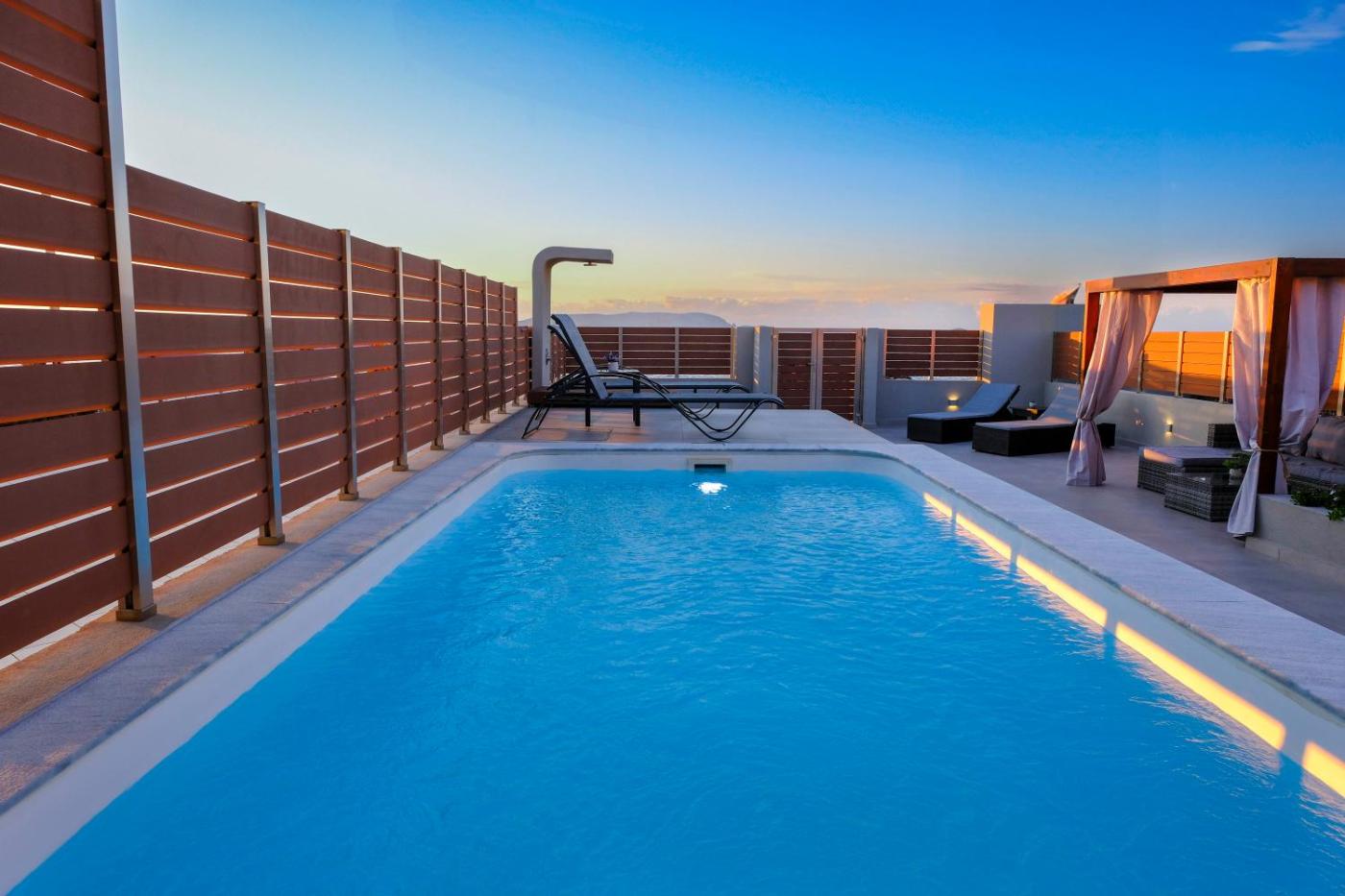 Situated within 400 metres of Gournes Beach and 1.2 km of Cretaquarium Thalassocosmos, Blue Velvet Coast Luxury Villas features rooms with air conditioning and a private bathroom in Kokkíni Khánion. This beachfront property offers access to a balcony, free private parking and free WiFi. The property offers an outdoor swimming pool, a garden and rooms with mountain views.