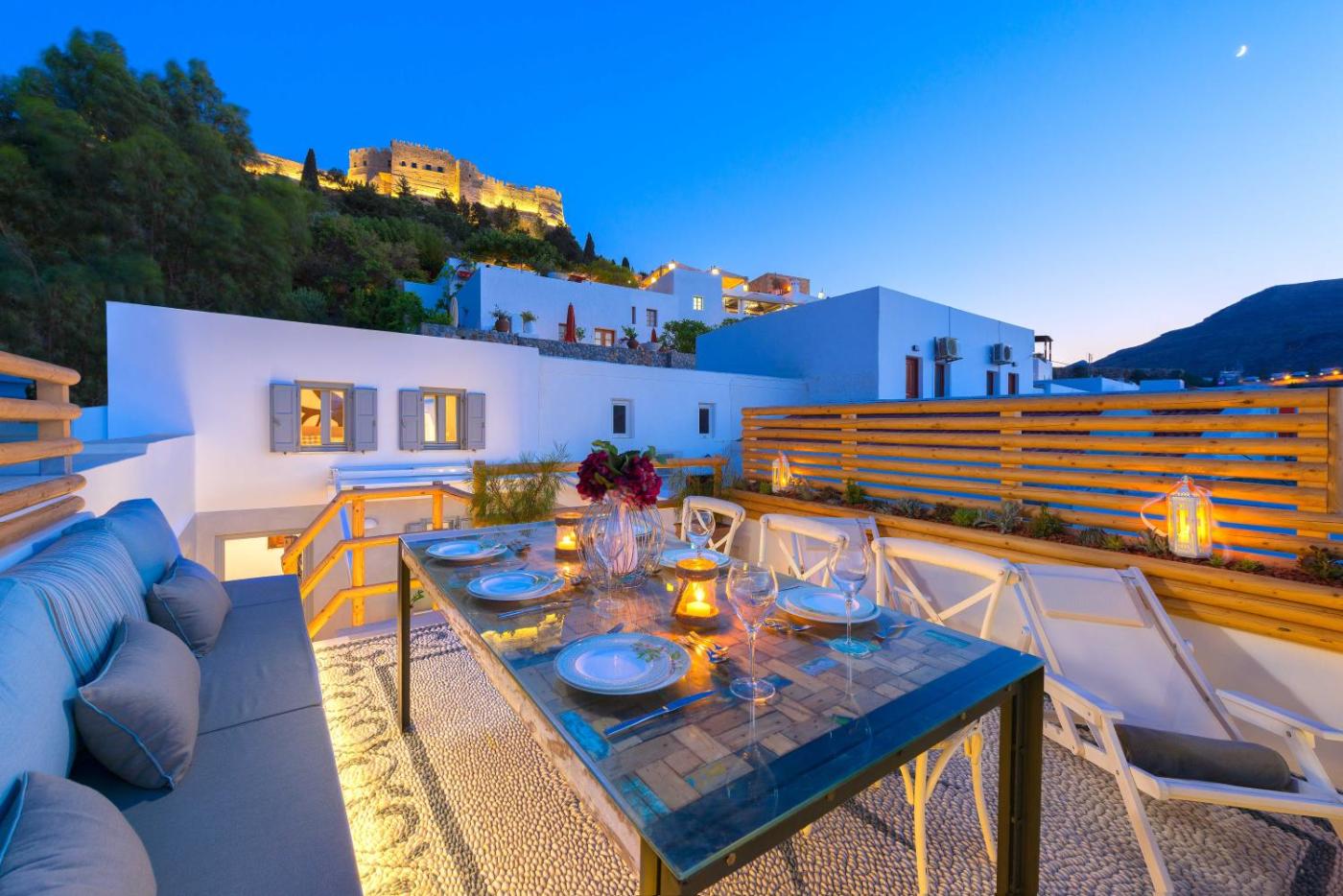 Two-Bedroom Villa with Sea View and Outdoor Hot Tub. Fitted with beamed ceilings, grey and white tones and traditional and modern furnishings, this villa has a rooftop terrace with panoramic sea view, and an internal courtyard with hot tub. It includes: -2 separate bedrooms -a fully equipped kitchen -a small living room with sofa and 40 Smart TV -2 modern bathrooms with free-standing shower cabin and hydromassage jets -Korres toiletries, Coco-Mat beach towels, bathrobes and slippers -an Pad air 2 -free WiFi.