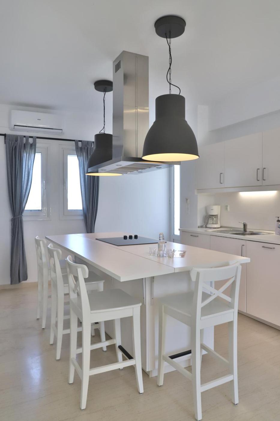 Studio with Interconnecting Door. This studios special feature is the pool with a view. The studio offers a tea and coffee maker, a seating area, as well as a private bathroom featuring a walk-in shower and a hairdryer. The fully equipped kitchenette features a stovetop, a refrigerator, kitchenware and a toaster. The spacious air-conditioned studio provides a flat-screen TV with cable channels, a washing machine, a private entrance, soundproof walls as well as sea views. The unit offers 4 beds. ;