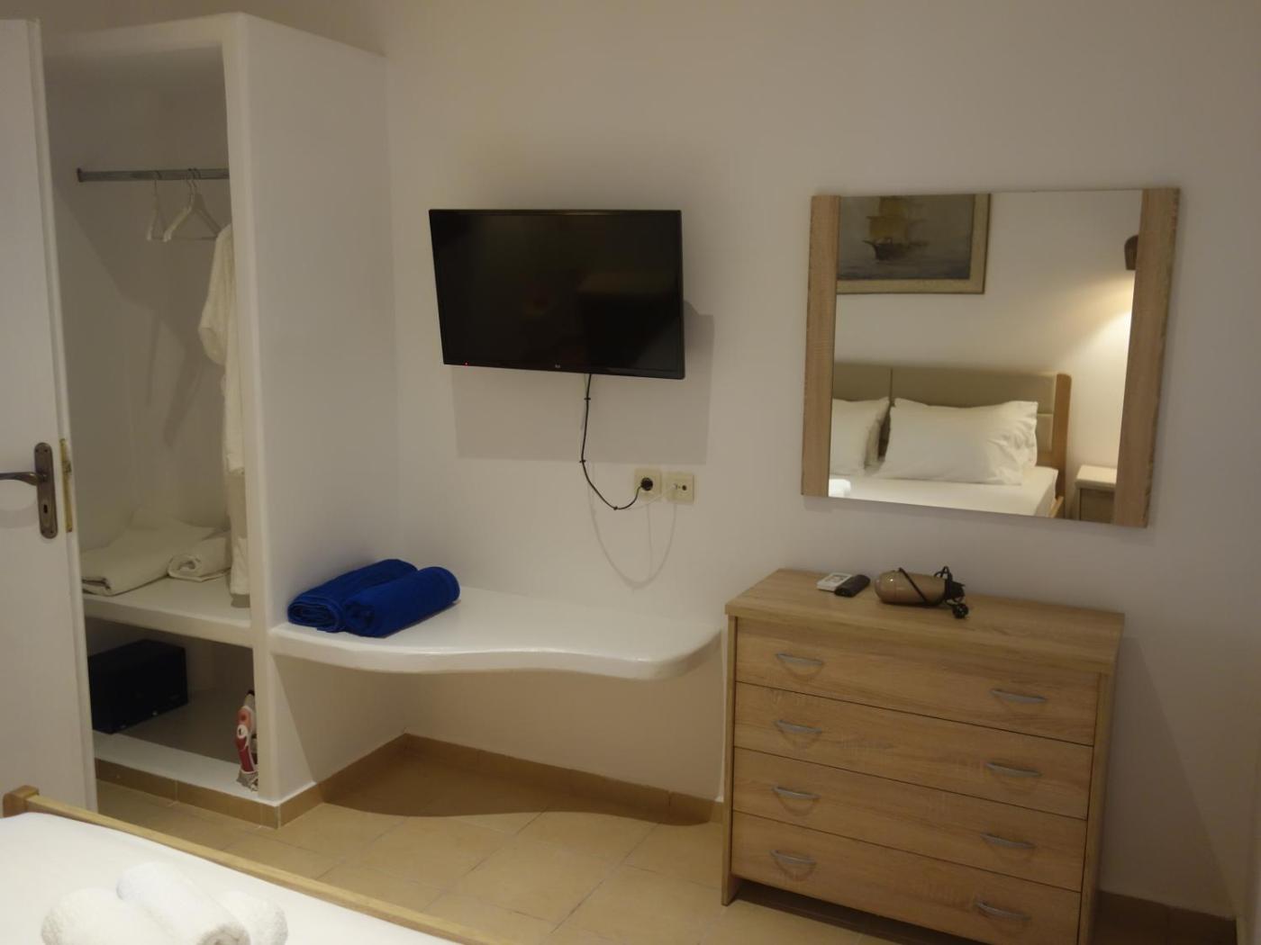 One-Bedroom Apartment. Guests will have a special experience as this apartment features a pool with a view. Featuring a private entrance, this air-conditioned apartment is comprised of 1 living room, 1 separate bedroom and 1 bathroom with a shower and a hairdryer. Guests can make meals in the kitchenette that comes with a stovetop, a refrigerator, kitchenware and a tea and coffee maker. Boasting a terrace with sea views, this apartment also offers soundproof walls and a flat-screen TV. The unit offers 2 beds. ;
