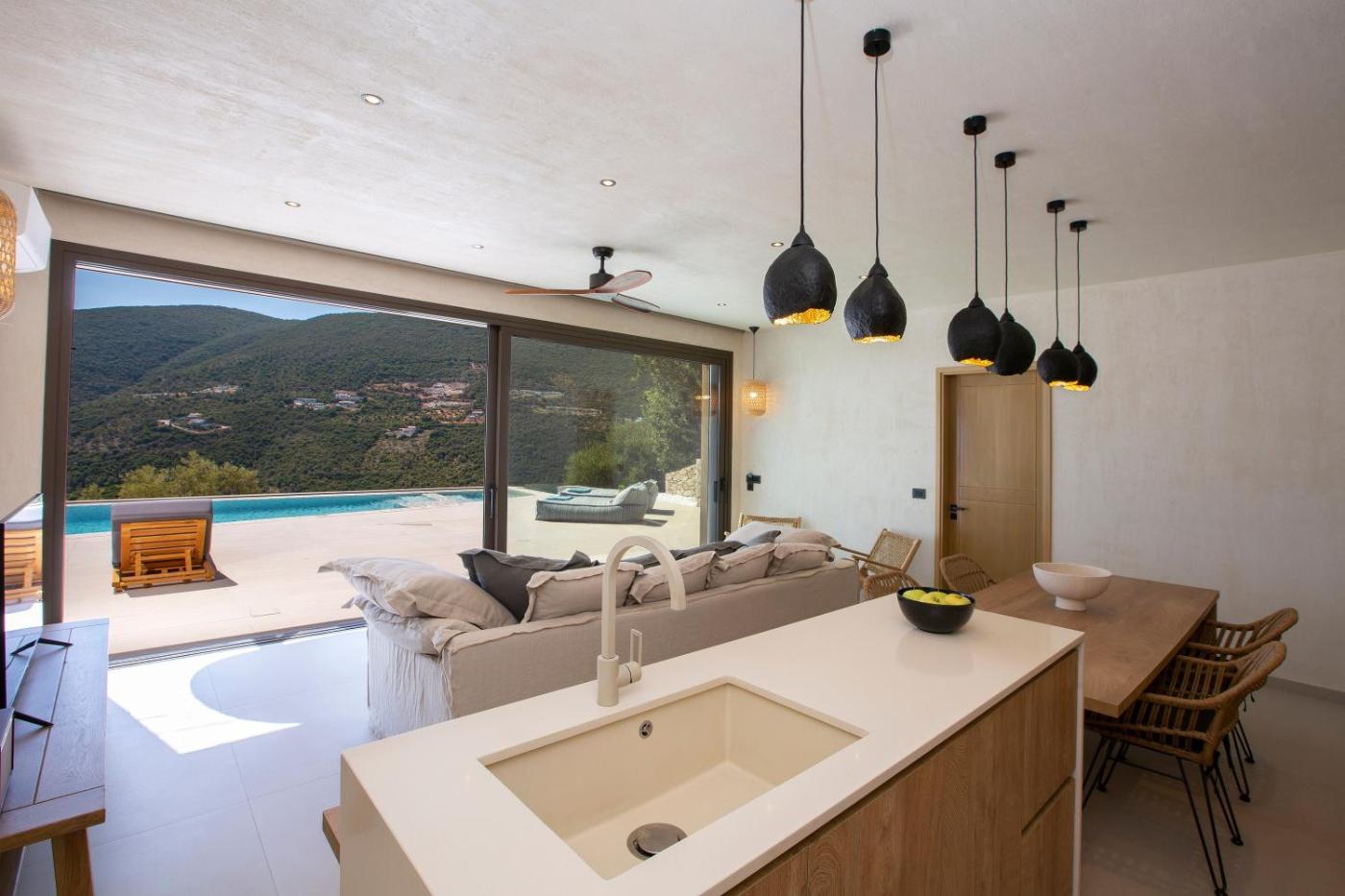 Villa with Sea View. This villas standout feature is the hot tub. Boasting a private entrance, this air-conditioned villa includes 1 living room, 2 separate bedrooms and 2 bathrooms with a hairdryer. Guests will find a dishwasher, kitchenware, an oven and a microwave in the well-fitted kitchen. The villa also features a barbecue. Featuring a terrace with sea views, this villa also offers a washing machine and a TV. The unit has 4 beds.