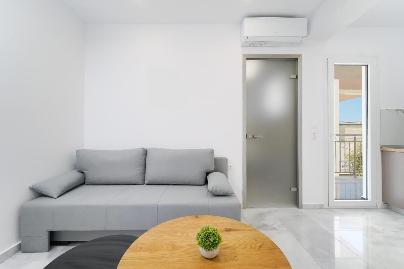 One-Bedroom Apartment with Balcony and City View. Featuring a private entrance, this air-conditioned apartment consists of 1 living room, 1 separate bedroom and 1 bathroom with a shower and a hairdryer. Guests can make meals in the kitchenette that is equipped with a stovetop, a refrigerator, a microwave and a tea and coffee maker. Boasting a terrace with garden views, this apartment also provides soundproof walls and a flat-screen TV. The unit offers 2 beds. ;