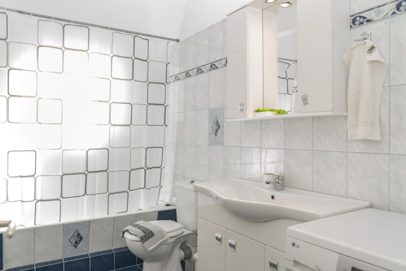 One-Bedroom Apartment. Boasting a private entrance, this air-conditioned apartment features 1 living room, 1 separate bedroom and 1 bathroom with a bath and a shower. Guests will find a stovetop, a refrigerator, kitchenware and an oven in the well-equipped kitchen. The apartment also comes with a barbecue. Featuring a terrace with garden views, this apartment also features a washing machine and a flat-screen TV. The unit has 2 beds. ;